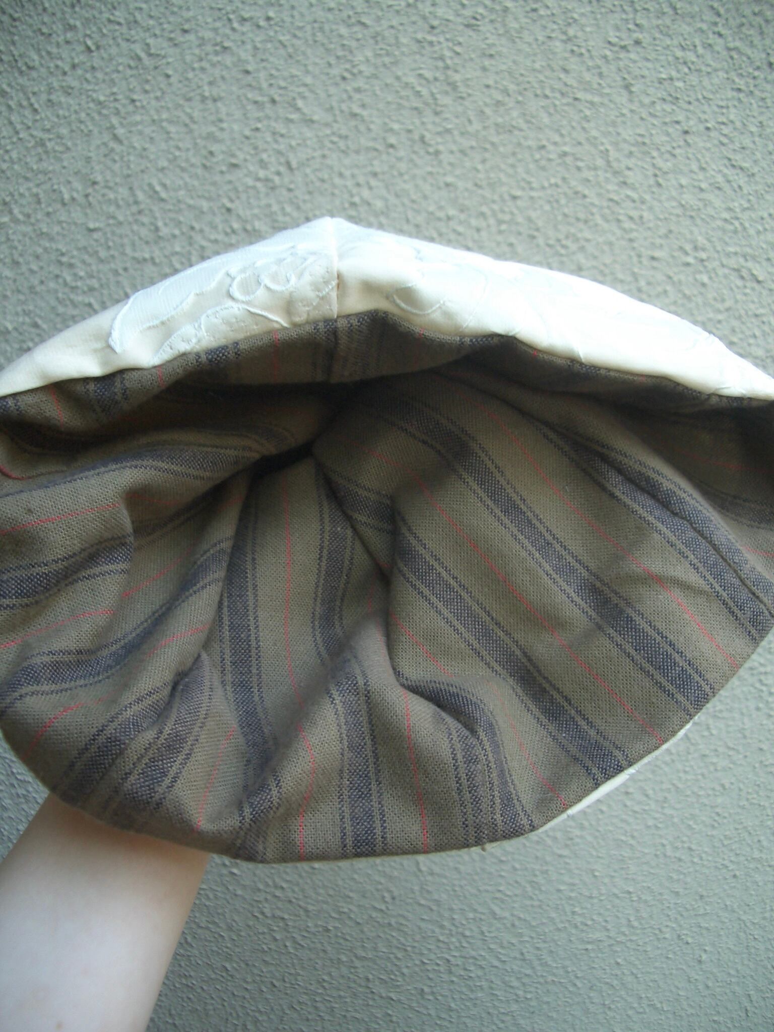 今回はリバーシブル。裏の柄でも被れます。